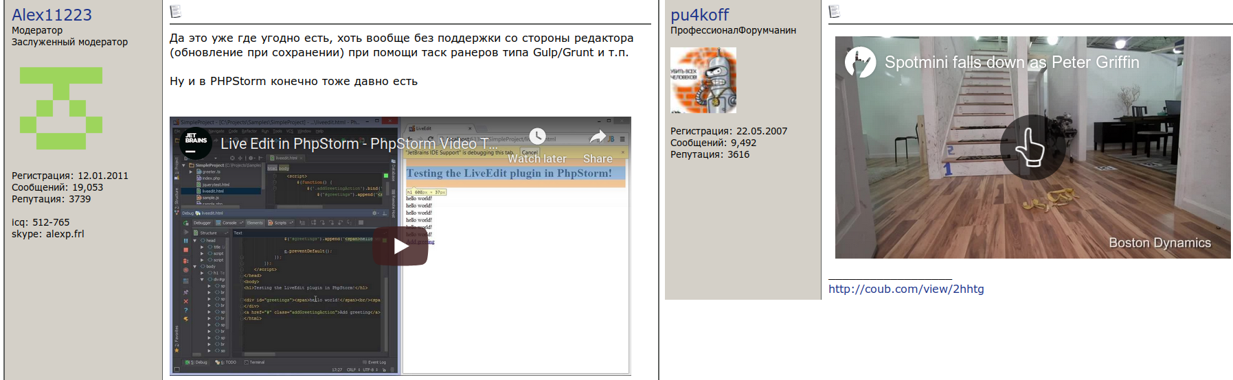 UserScripts for a vBulettin 3.8 forum (https://programmersforum.ru in 2019, before the admin went completely mad and we moved to Discourse https://www.programmersforum.rocks :D). The scripts were tested using TamperMonkey for Chrome and Firefox (also earlier GreaseMonkey but it became broken after Firefox 57 and we stopped using it).