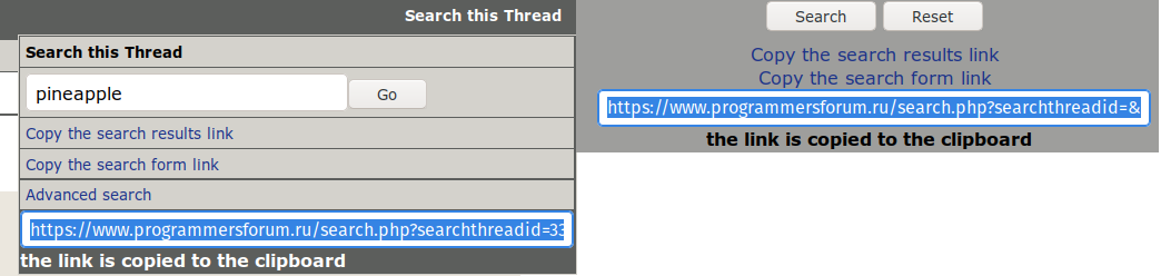 Adds buttons to copy links to the search results (you cannot simply copy it from the address bar because it expires) or filled search form.