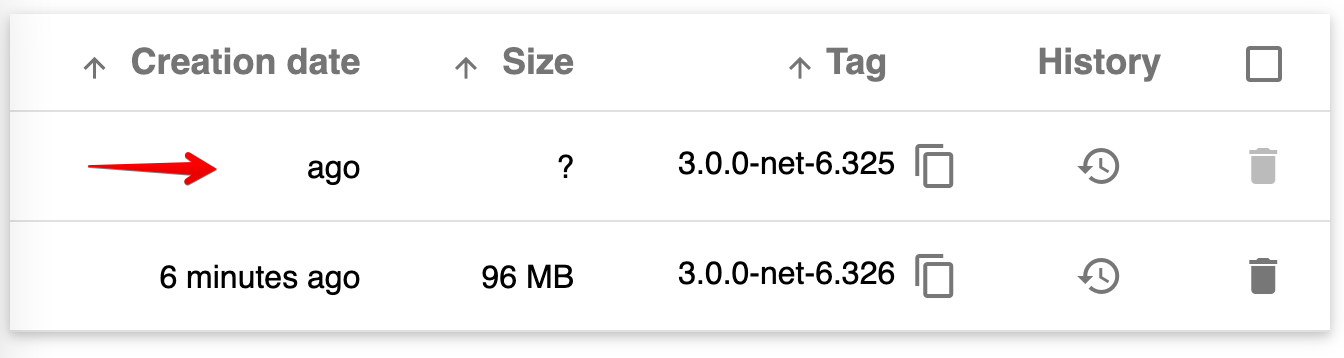 In the case of the screenshot above, the registry still contains the deleted image's tag: