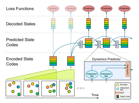 For the purpose of understanding the challenge of relational reasoning. they publised VIN that involves predicting the future in a physical scene. From just a glance, humans can infer not only what objects are where, but also what will happen to them over the upcoming seconds, minutes and even longer in some cases. For example, if you kick a football against a wall, your brain predicts what will happen when the ball hits the wall and how their movements will be affected afterwards (the ball will ricochet at a speed proportional to the kick and - in most cases - the wall will remain where it is).