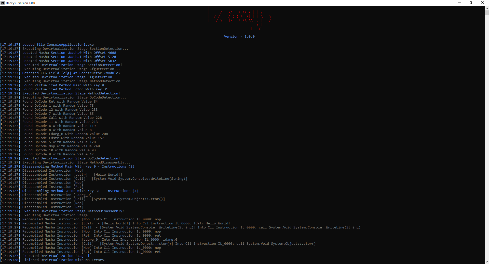 Deoxys is a Devirtualization tool for NashaVM, a Virtual Machine which runtime was made in C++/CLI