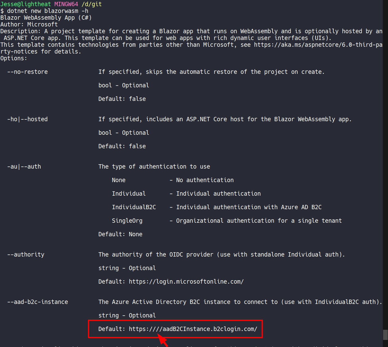 in default URL for blazorwasm --aad-b2c-instance parameter