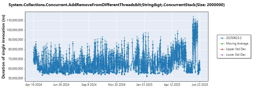 System.Collections.Concurrent.AddRemoveFromDifferentThreads<String>.ConcurrentStack(Size: 2000000)