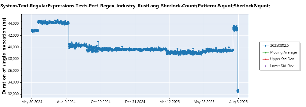 System.Text.RegularExpressions.Tests.Perf_Regex_Industry_RustLang_Sherlock.Count(Pattern: "Sherlock", Options: Compiled)