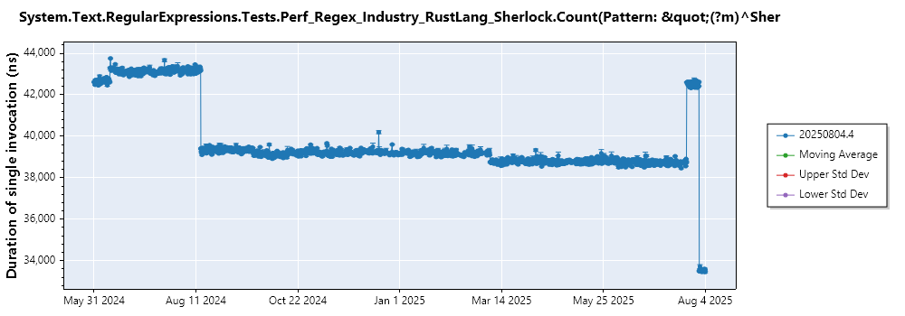 System.Text.RegularExpressions.Tests.Perf_Regex_Industry_RustLang_Sherlock.Count(Pattern: "(?m)^Sherlock Holmes|Sherlock Holmes$", Options: Compiled)