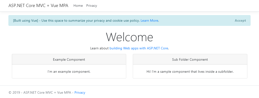 Highly scalable, quick scaffolding, customizable and easy to setup starting point for ASP.NET Core MVC using Razor Page and Vue.