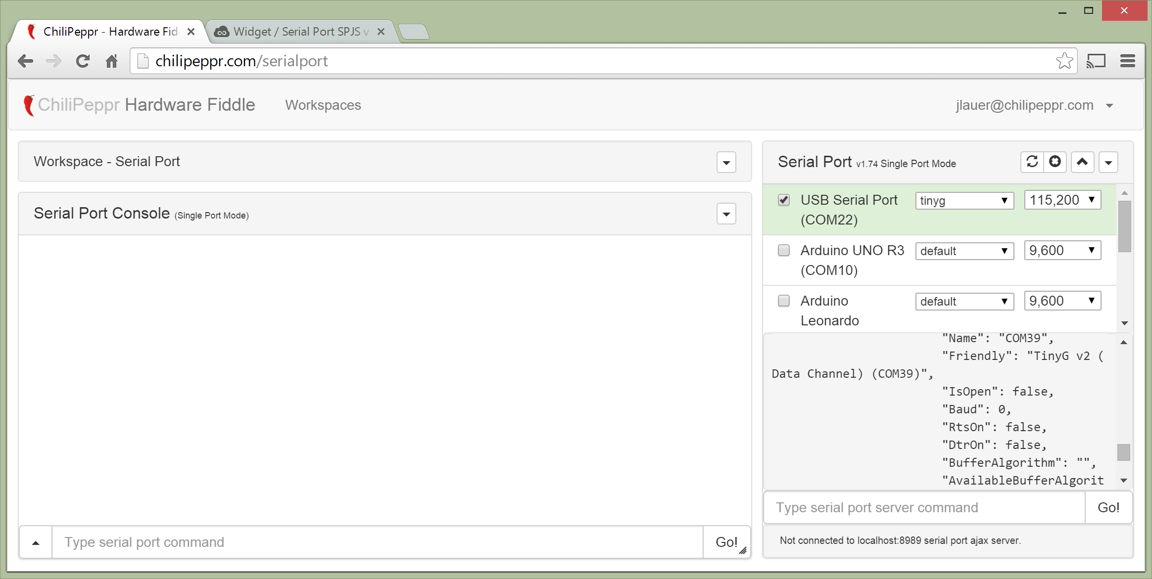 This is the Serial Port JSON Server being used inside the TinyG workspace in ChiliPeppr.