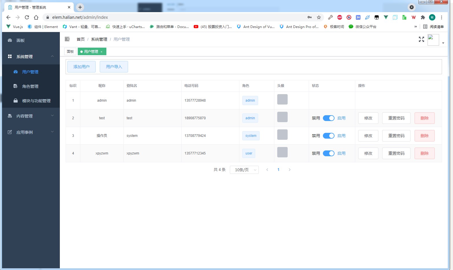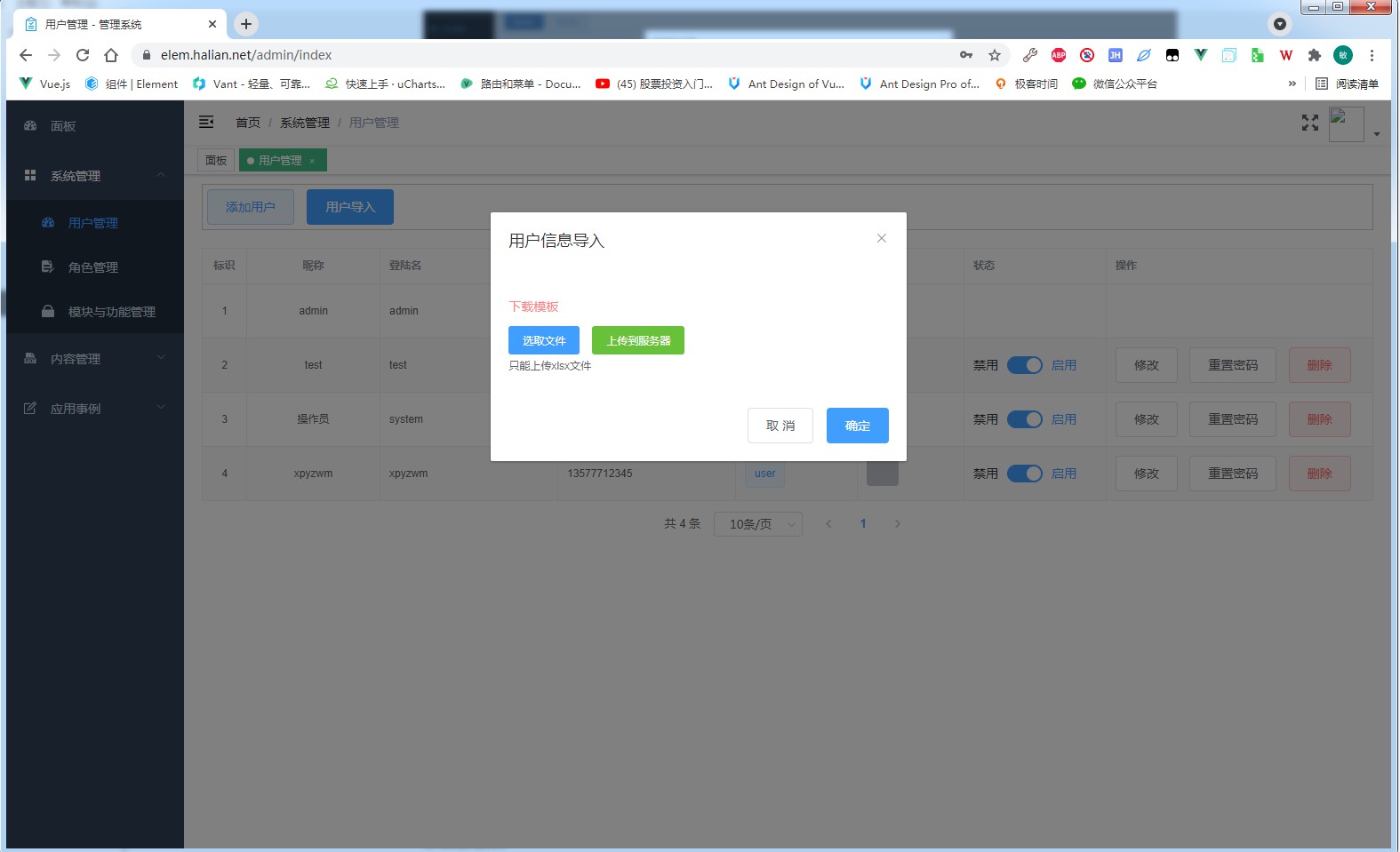 (管理端 element ui)演示网站(https://demo.wmhello.cn/admin/)