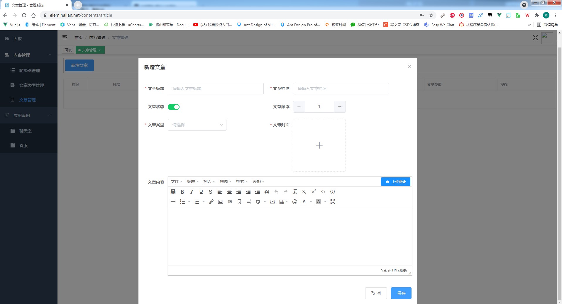 - 增加简单的内容管理(文章、文章类型、轮播图,使用于小程序和公众号等)